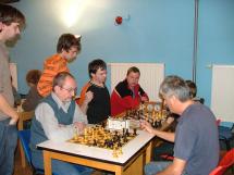 Dalo by se očekávat, že účastníci turnaje ráno zalehnou a většinu dalšího dne prospí, ale neplatilo to bezezbytku. Našli se takoví borci jako Jirka Halla a Jindra Novák, kteří toho ještě neměli dost a za ranního kuropění se přímo z Libčic vydali autem na GP v rapidu do Mladé Boleslavi (třetím do party byl Miroslav Šilhavý z ŠK Zdice), načež je následující den čekala vážná partie v soutěžích družstev. Není bez zajímavosti, že zatímco Jindru v Boleslavi přece jen zmohla únava, poslední 4 partie proklimbal a prohrál a skončil se skromným výsledkem 3 z 9, noční pták Jirka Halla byl ve svém živlu, uhrál 4,5 z 9, a to ještě spadl ve vyhrané koncovce s hráčem okolo 2200. Pro čtenáře, kteří snad mají obavu o zdraví jmenovaných nadšenců, ještě doplním informaci o jejich výkonu v partii následujícího dne v RP družstev. Oba svou partii vyhráli, byť Jindra s notnou pomocí soupeře, který v remízové věžovce V+P : V+P nastavil věž. V hospodě po zápase se pak zdržel jenom pár minut, protože spěchal. Je snad zbytečné ptát se na důvod - měl na večer domluvenou šachovou partii. Jak ta dopadla, už nevím, ale dovolím si tipnout, že dobře, jelikož šachisté jsou tvorové nezničitelní.